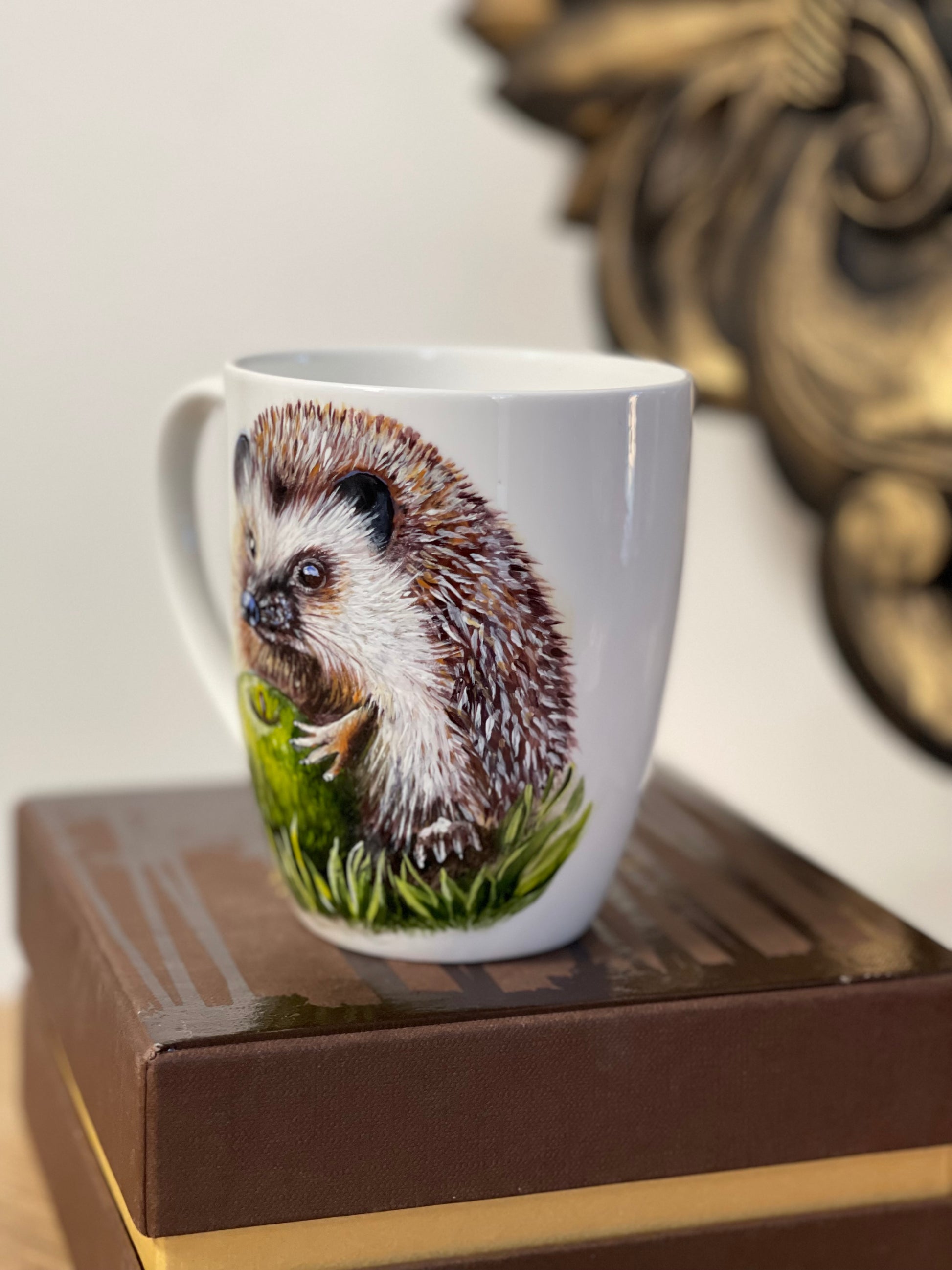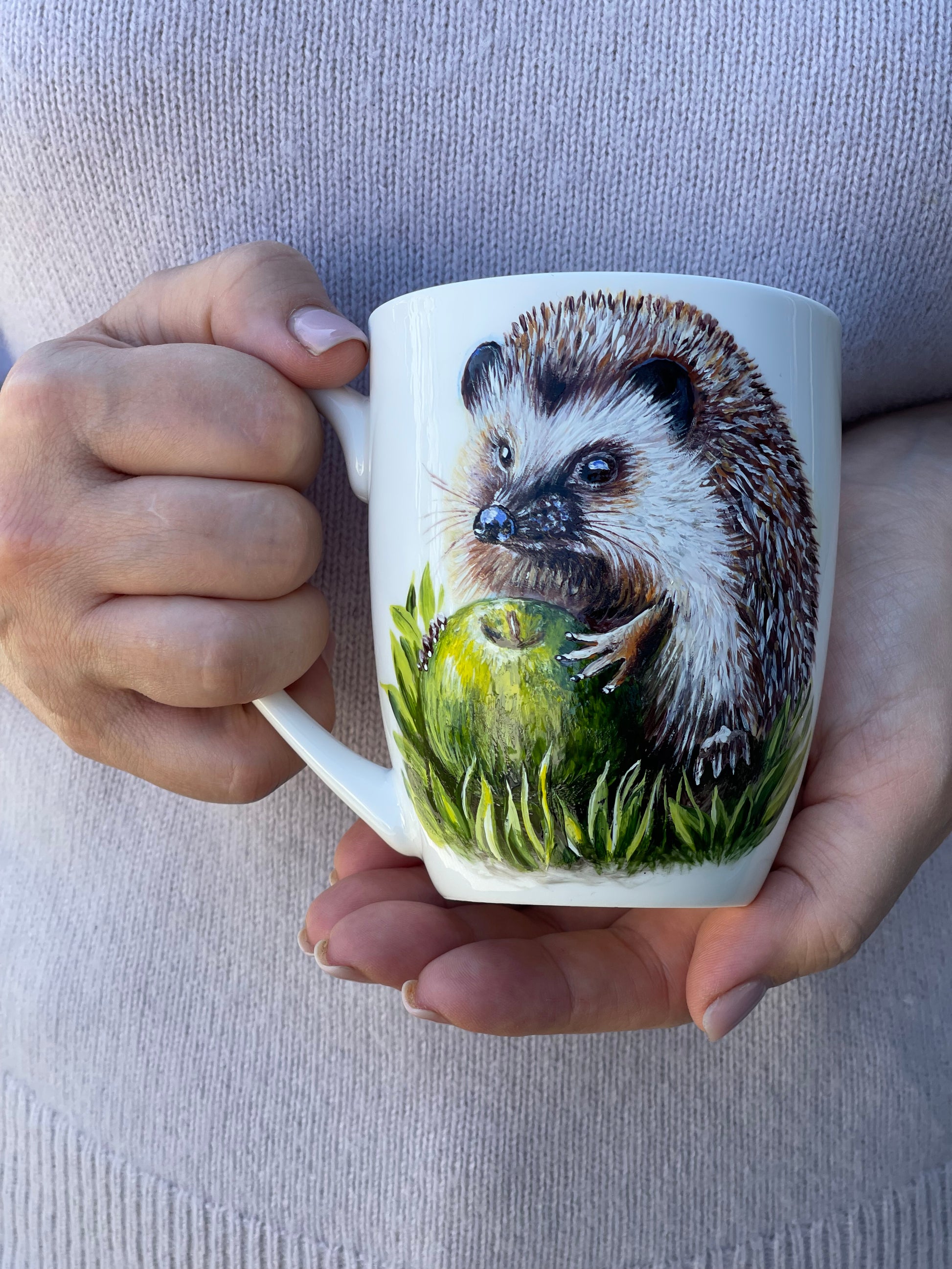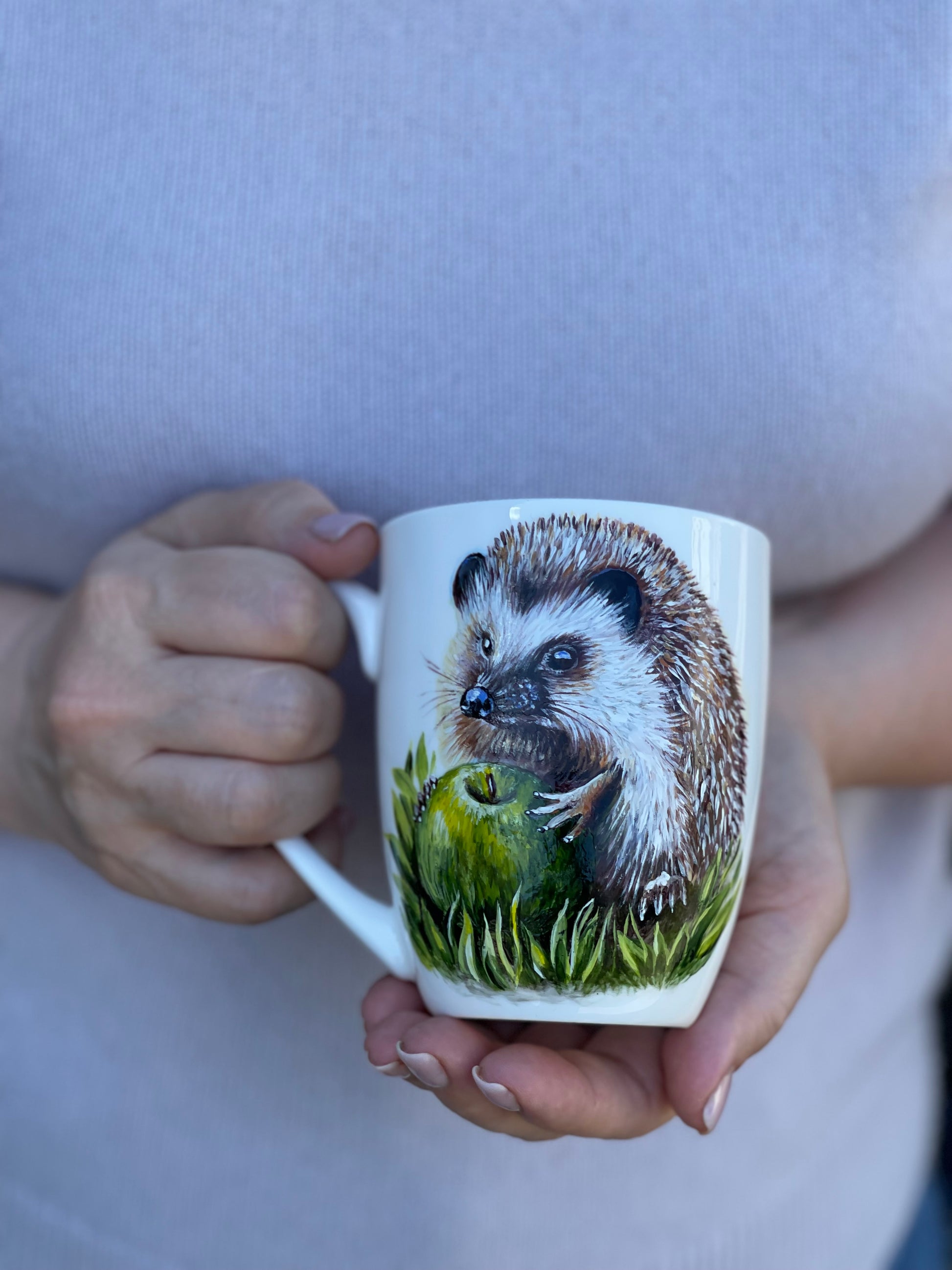 Rankų darbo porcelianinis puodelis su Ežiuku| Tapyba ant porceliano | Unikali dovana