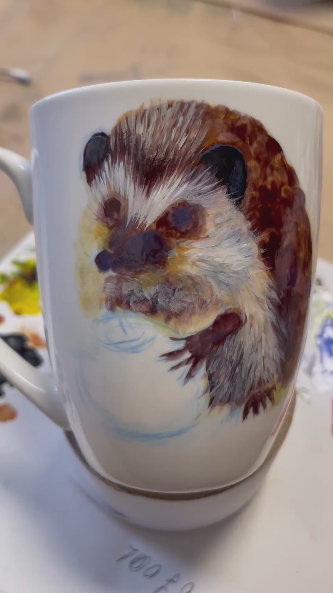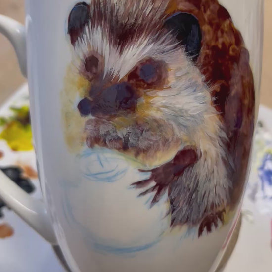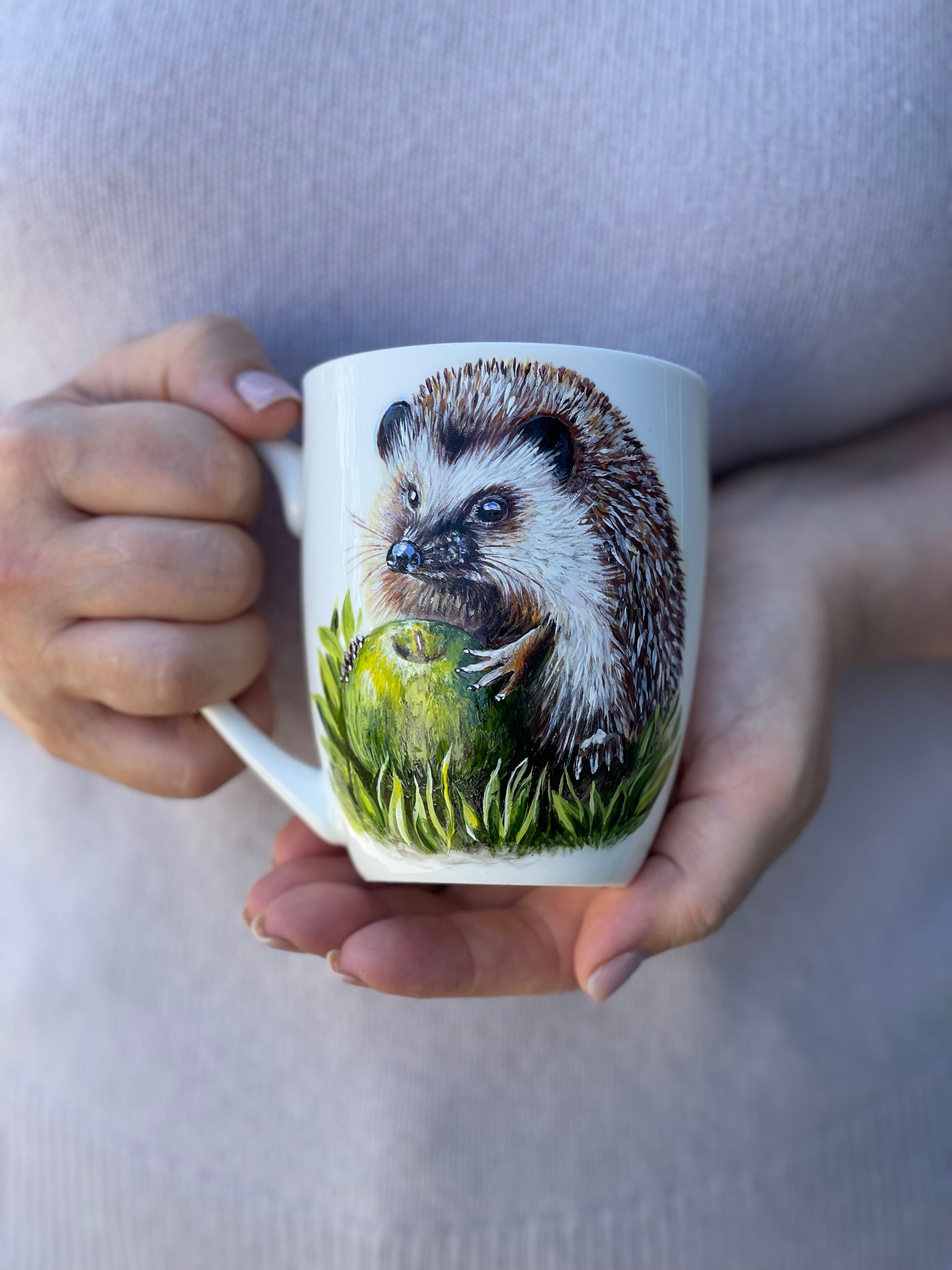Rankų darbo porcelianinis puodelis su Ežiuku| Tapyba ant porceliano | Unikali dovana