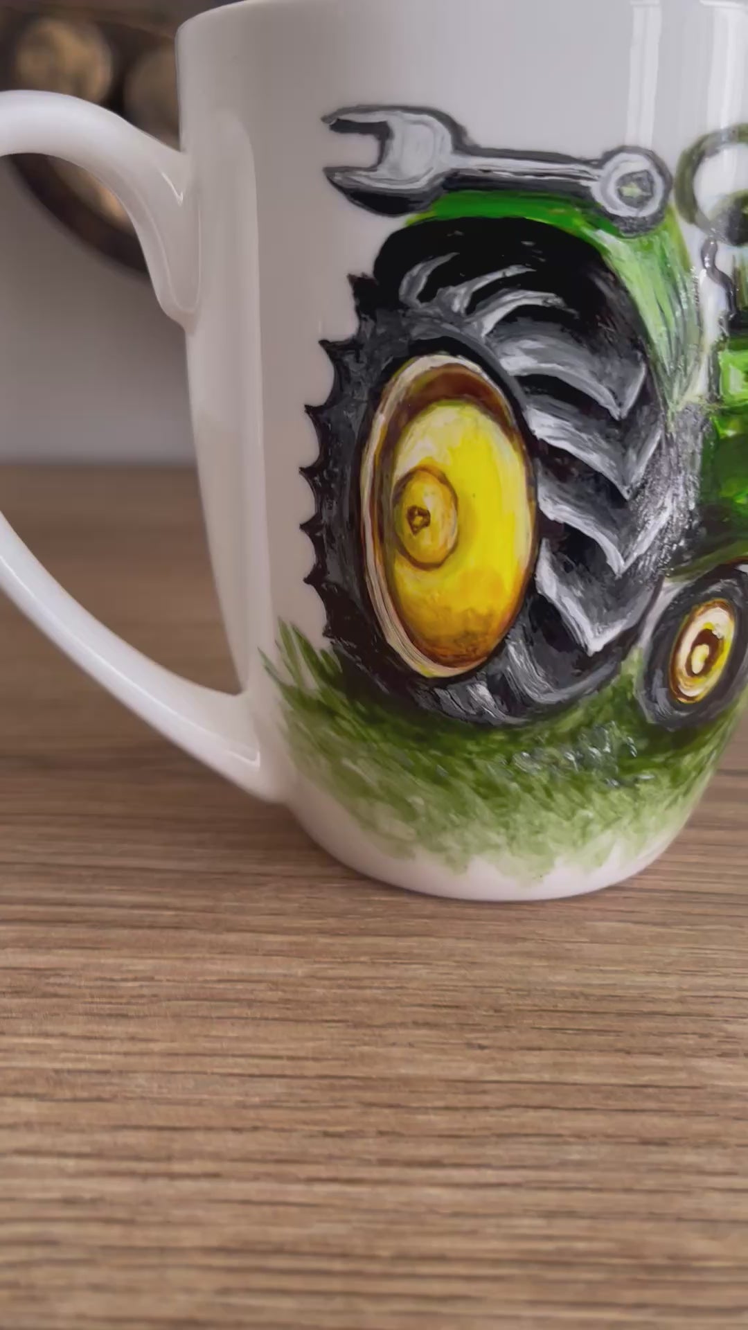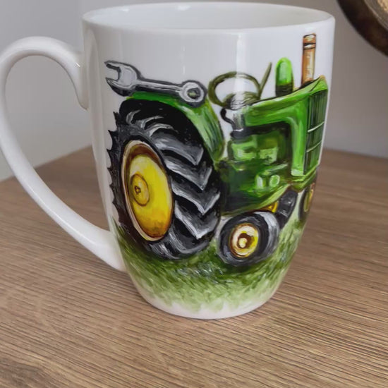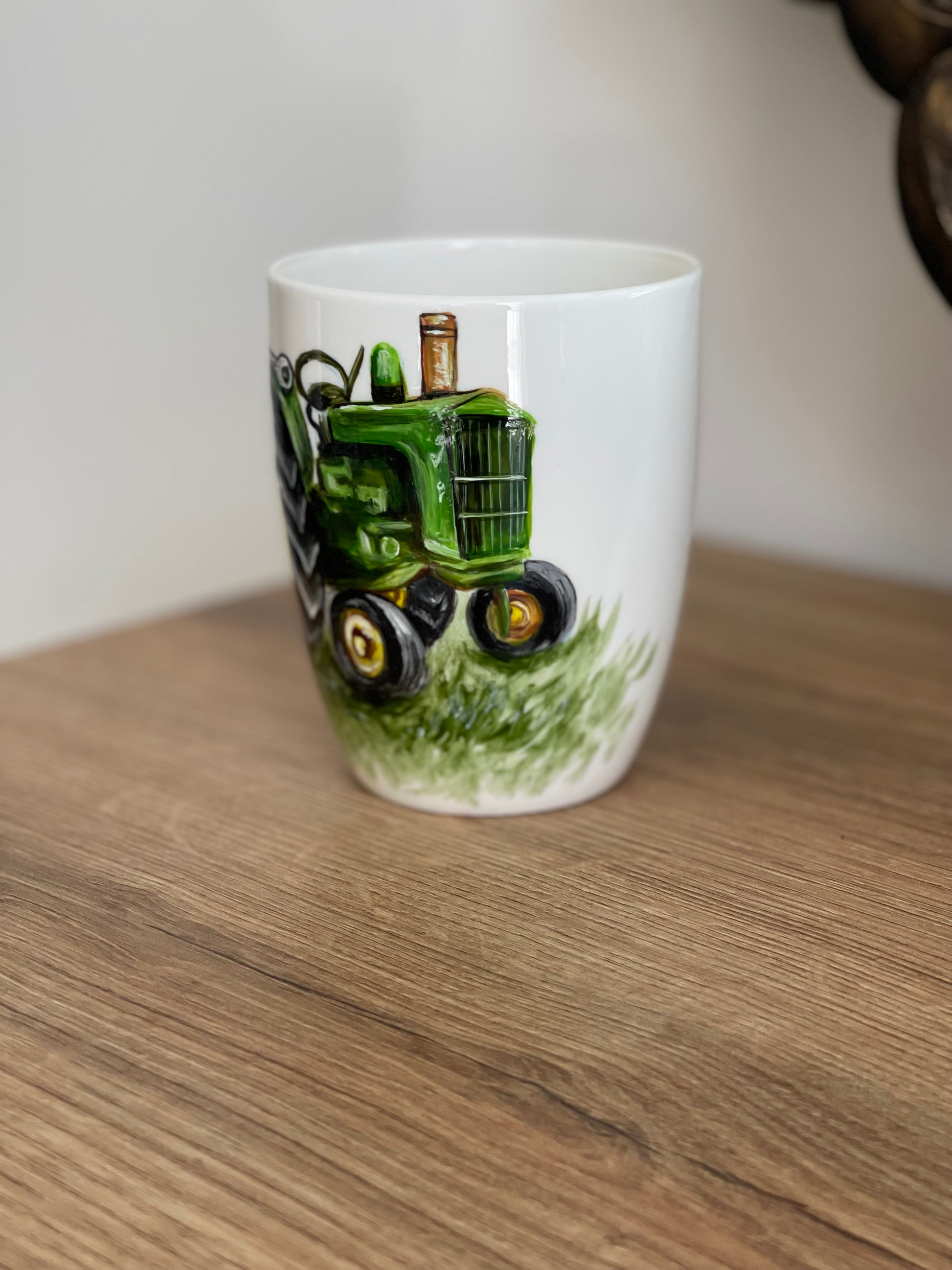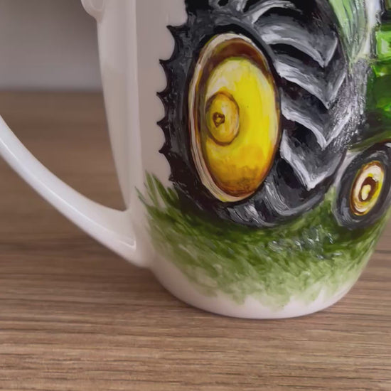 Rankų darbo porcelianinis puodelis su Traktoriumi Tapyba ant porceliano | Unikali dovana