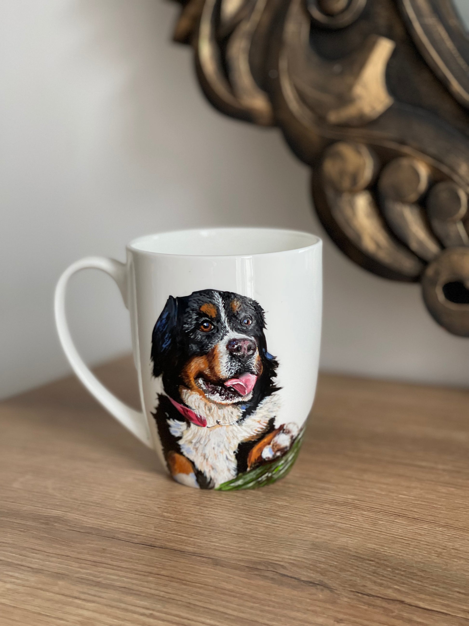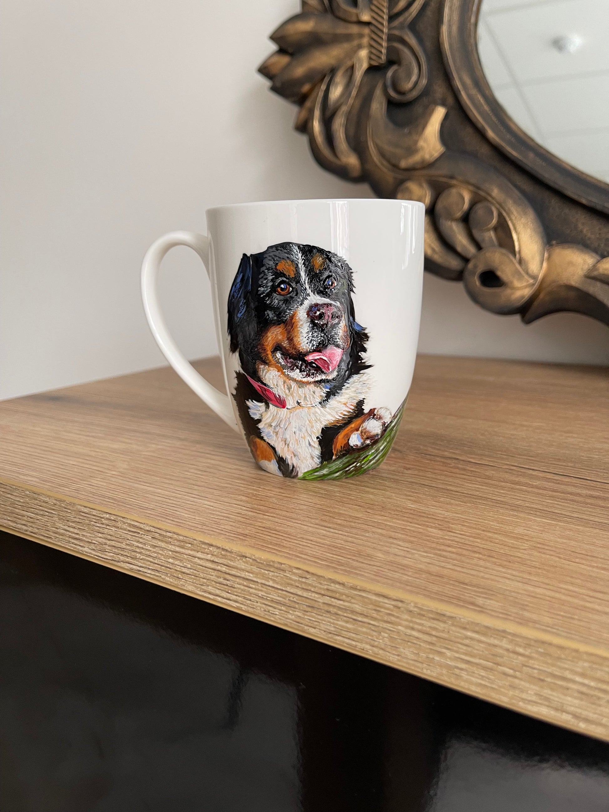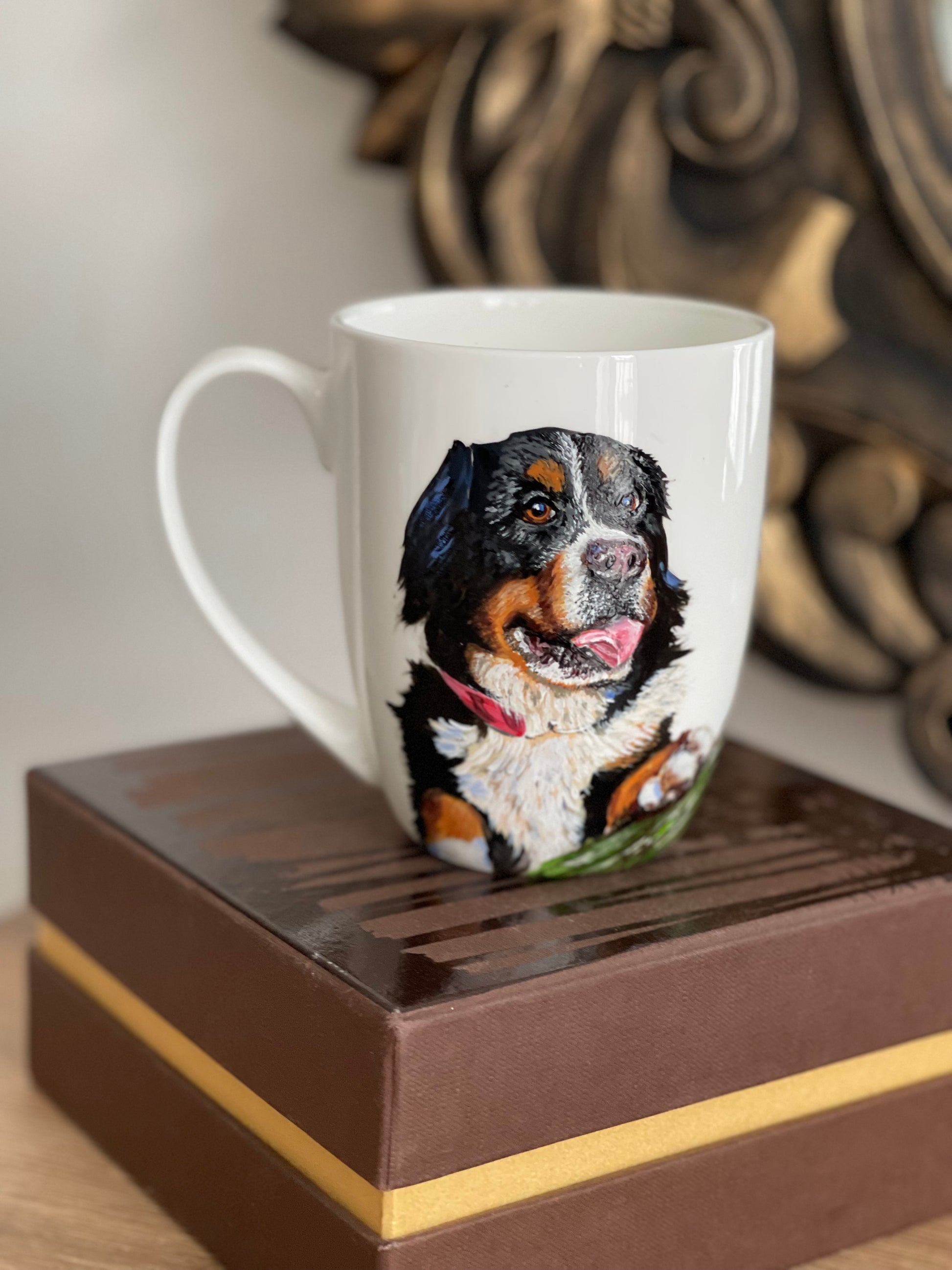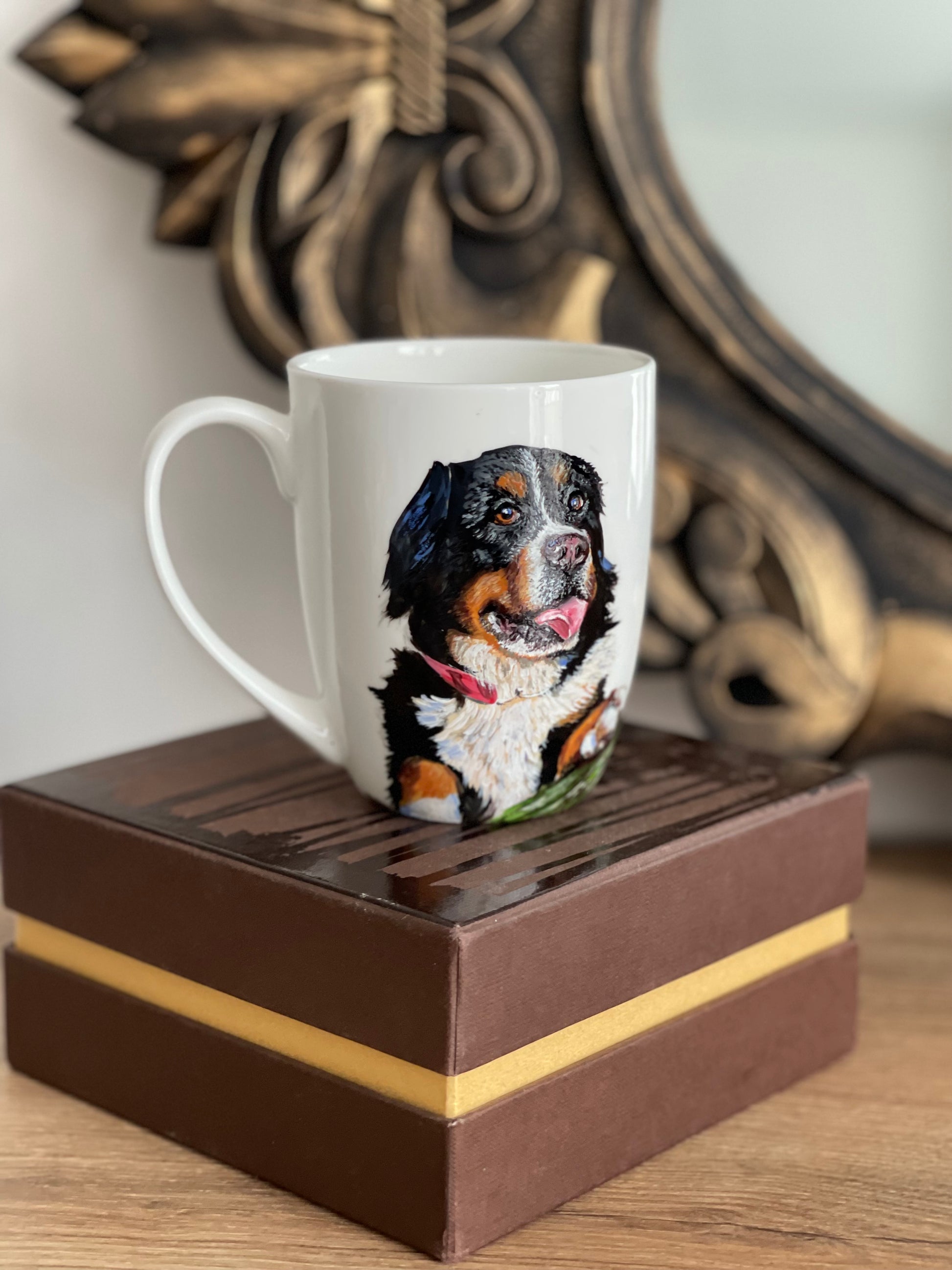 Rankų darbo porcelianinis puodelis su Šuniu| Tapyba ant porceliano | Unikali dovana