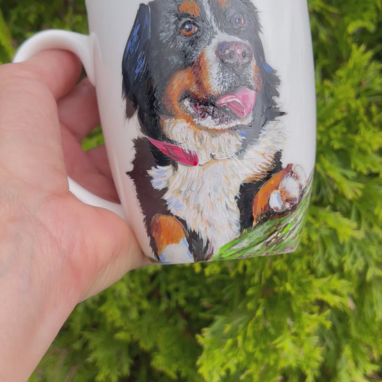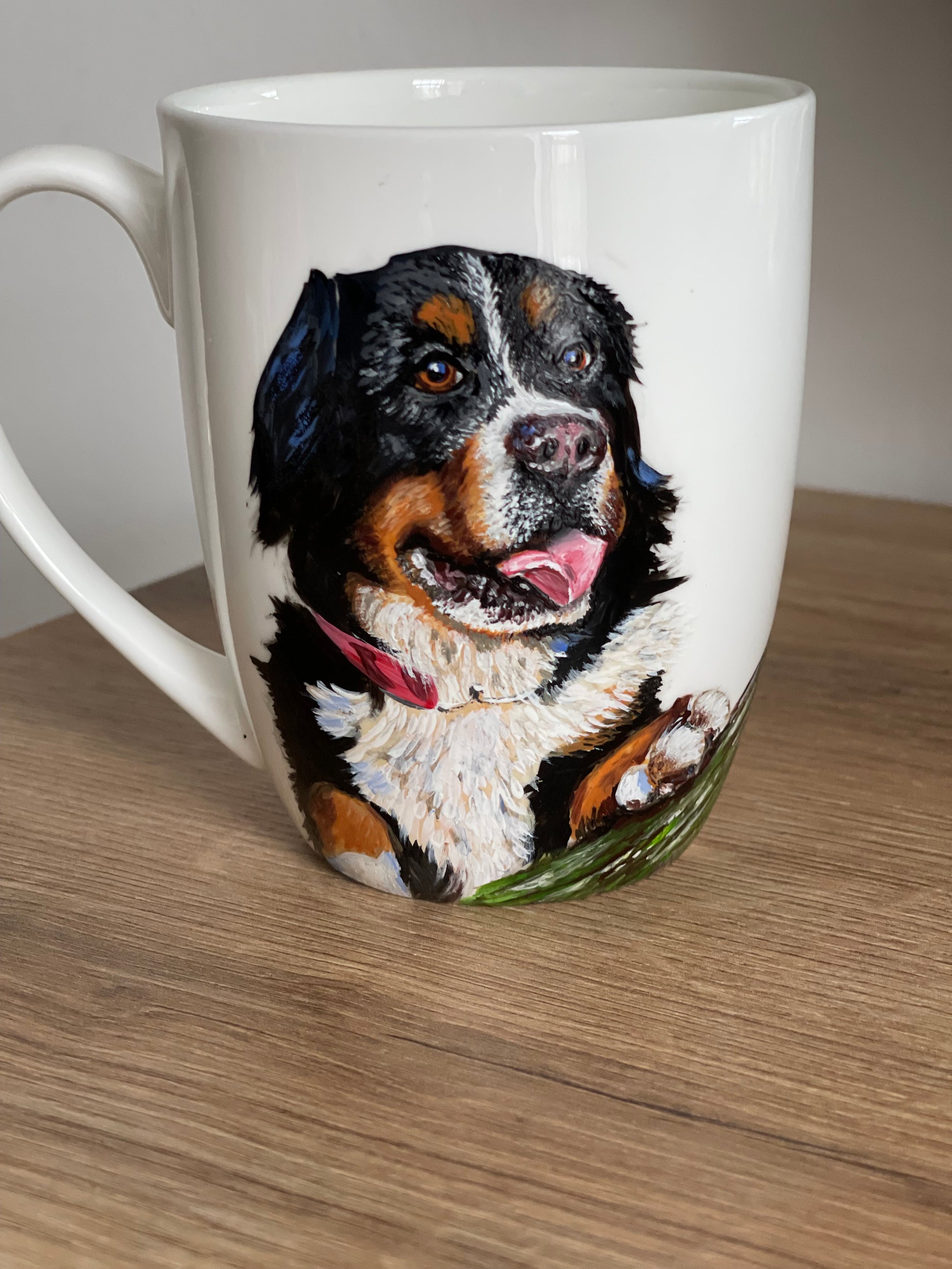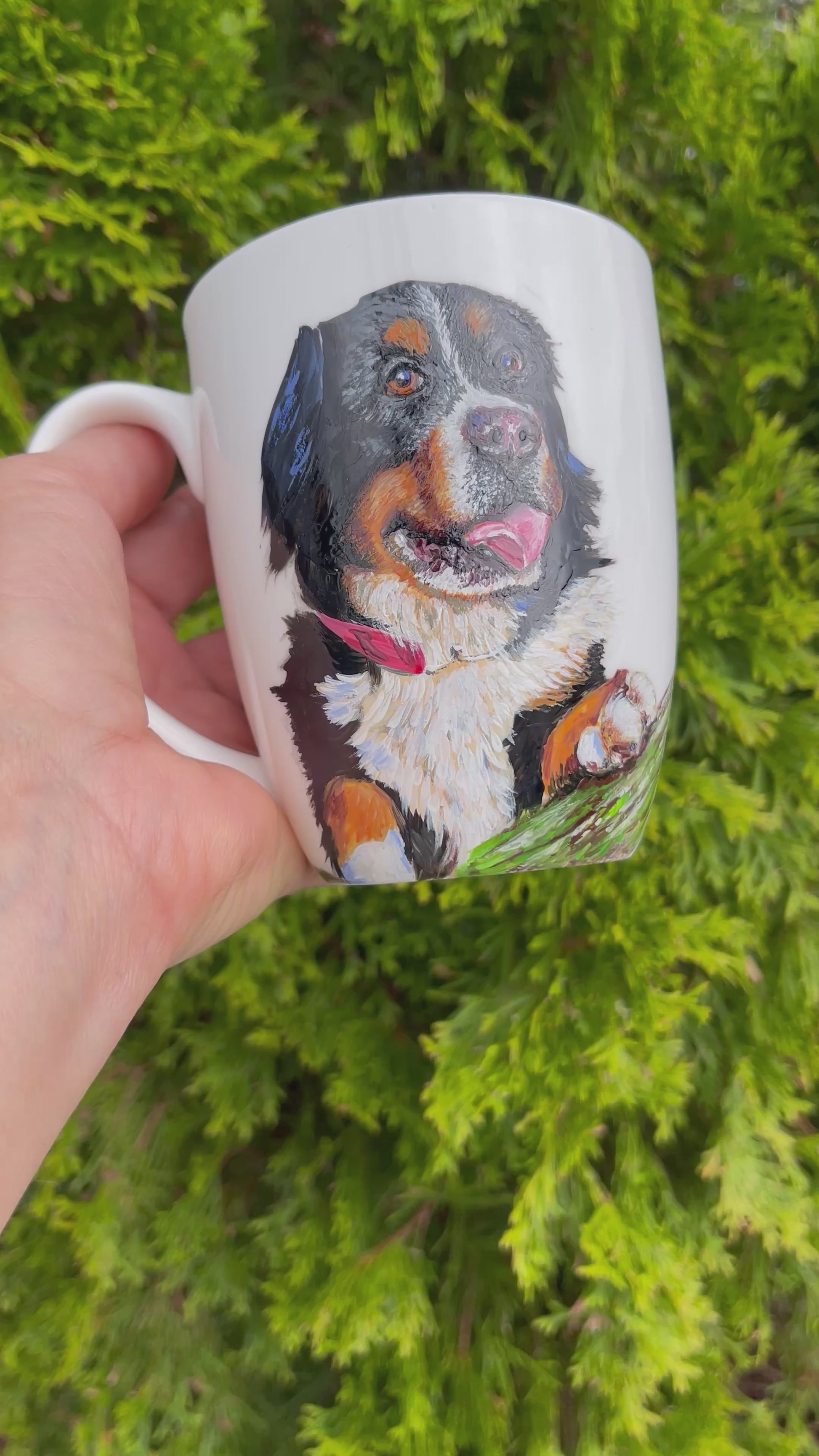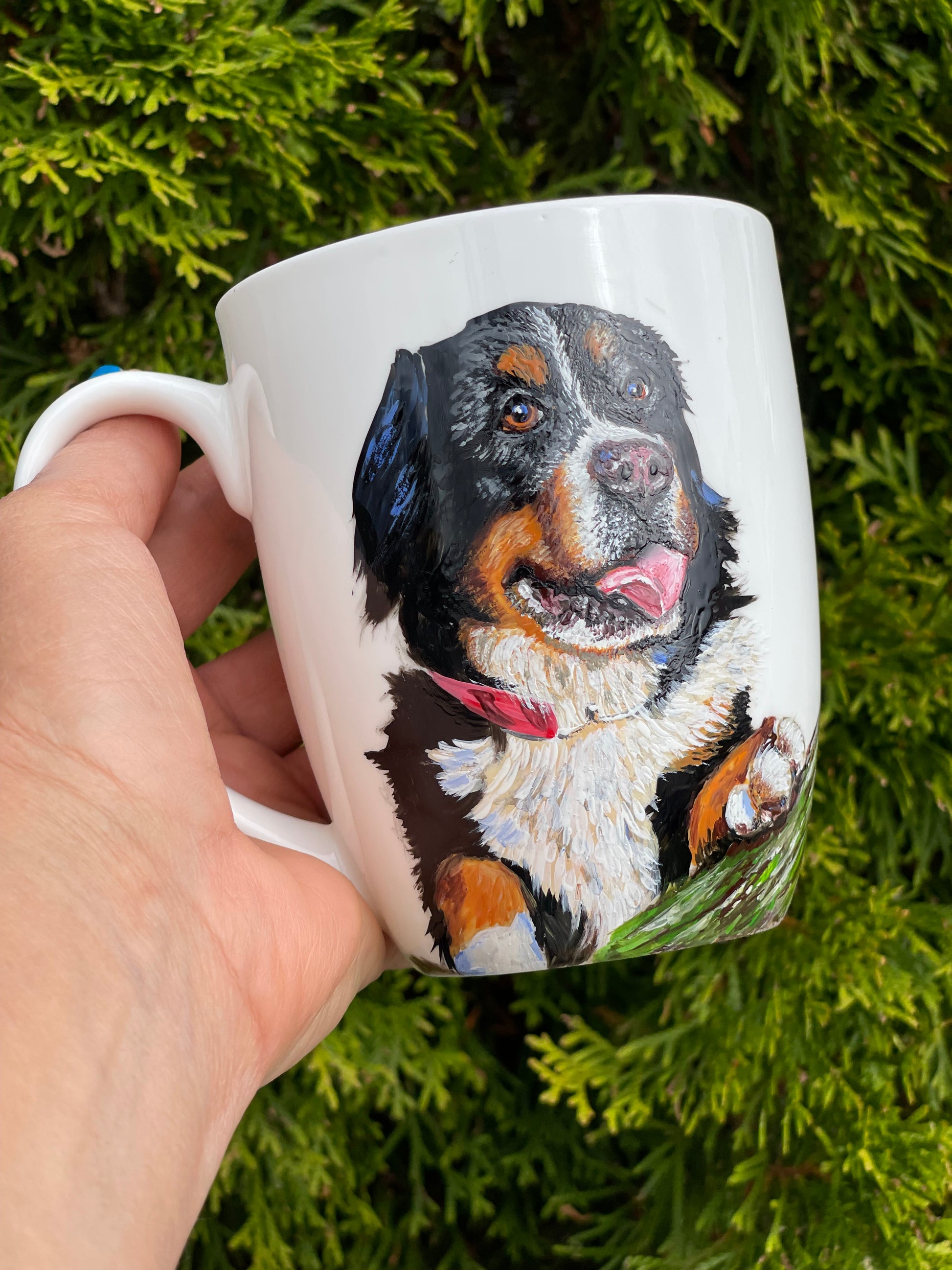 Rankų darbo porcelianinis puodelis su Šuniu| Tapyba ant porceliano | Unikali dovana