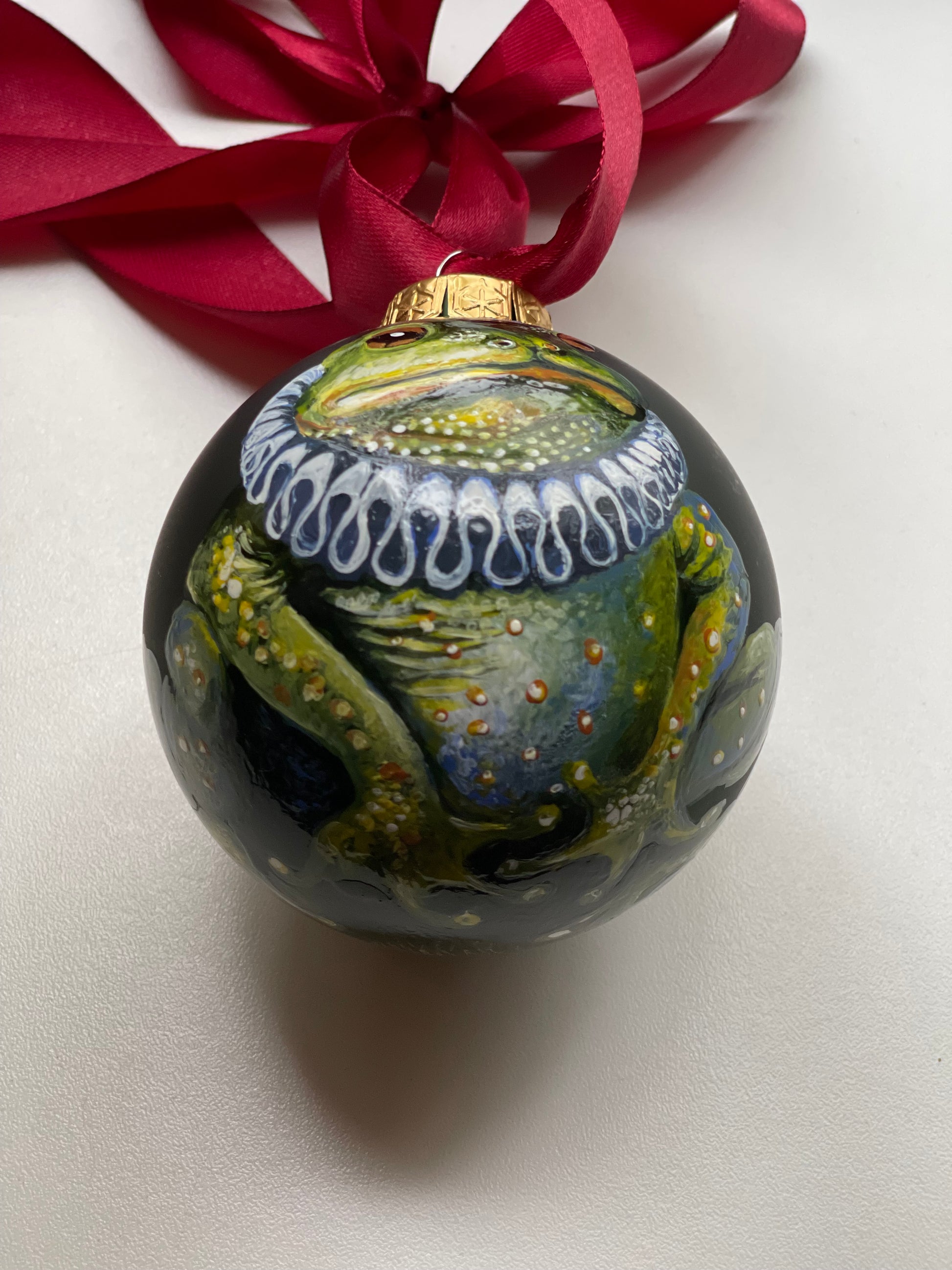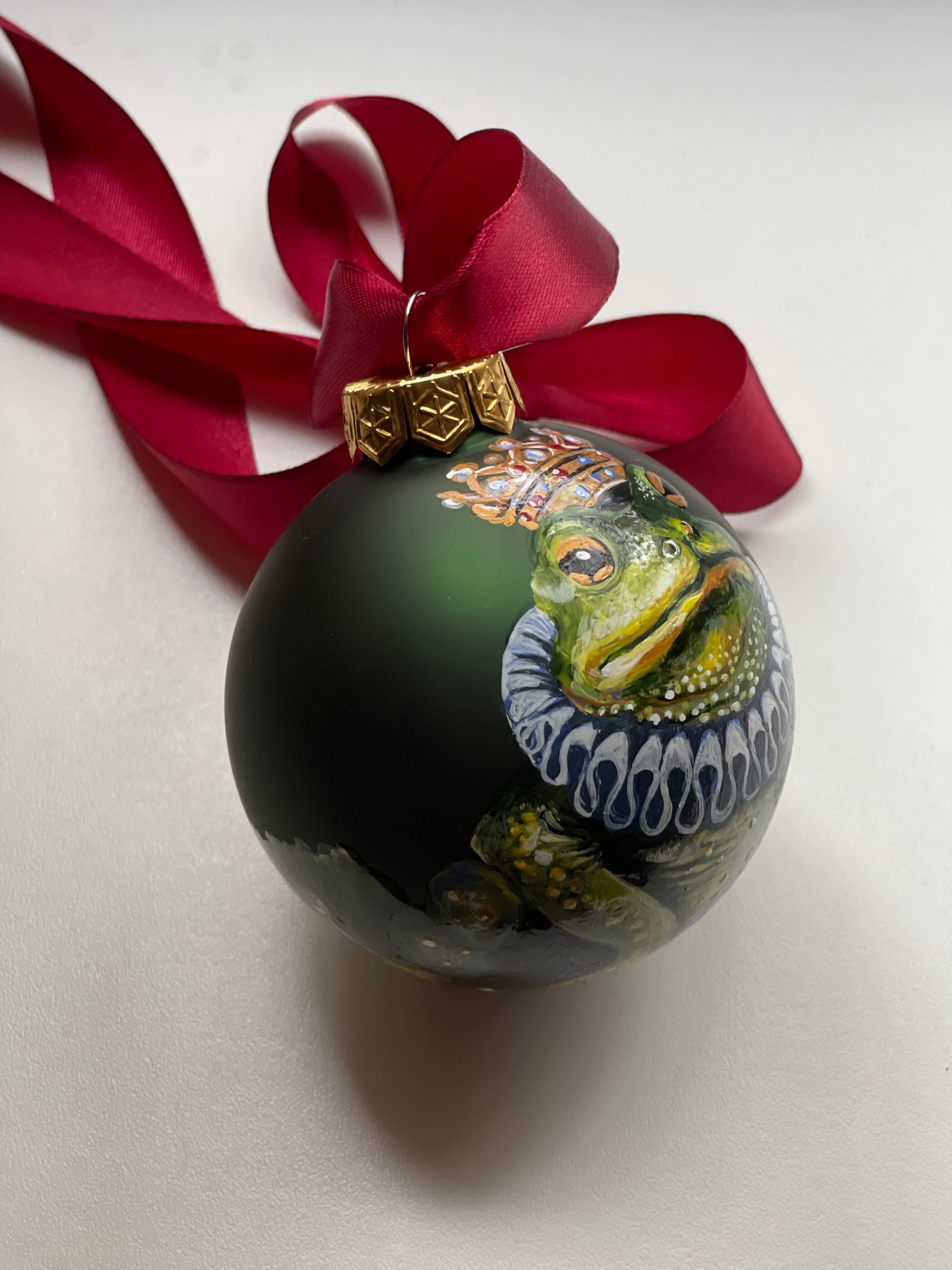Kiekvienas šis rankomis tapytas eglutės burbulas yra visiškai vienetinis — kūrybiškai dekoruotas miniatiūrine tapyba, suteikiančia eglutei ypatingo žavesio ir šilumos.
