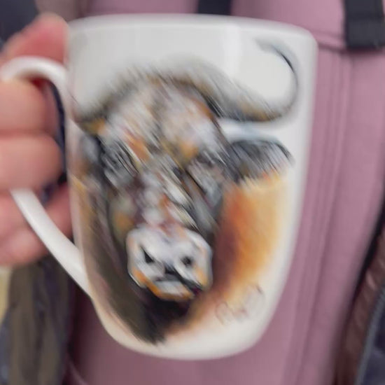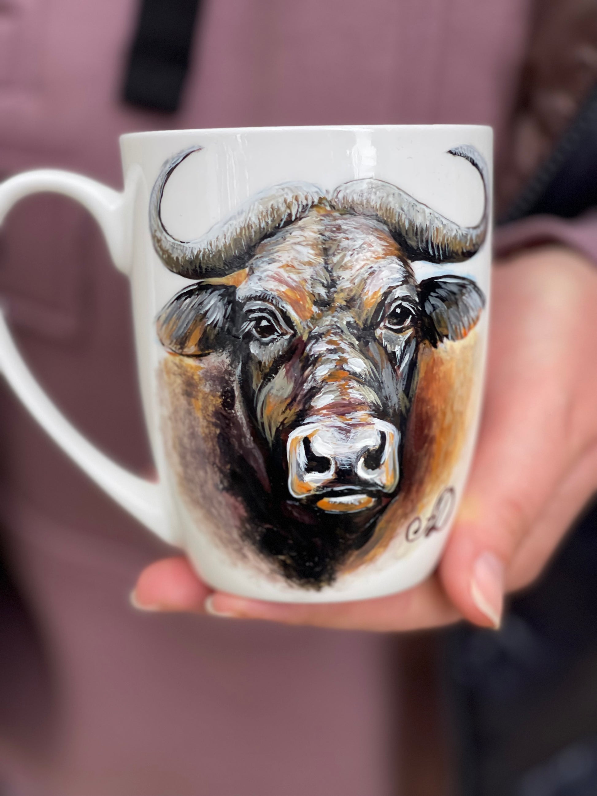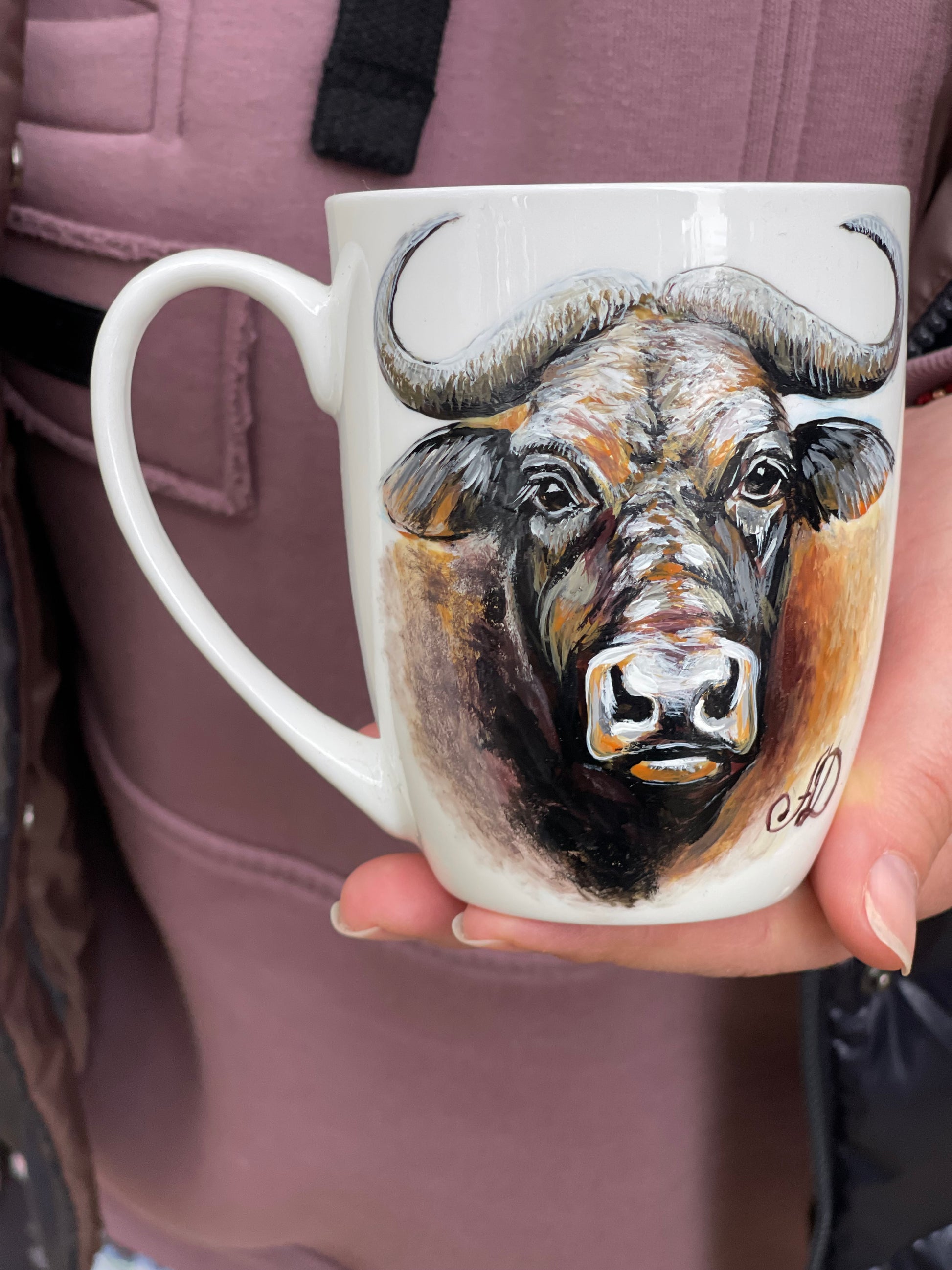 Rankų darbo porcelianinis puodelis su Jaučiu| Tapyba ant porceliano | Unikali dovana